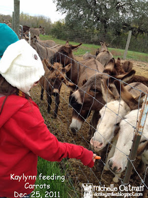 Then while getting ready to post today I realized that I never shared our traditional Christmas Day Donkey photos. It was rainy and cold so we didn't spend as much time as we like to with the donkeys, but they got like 6lbs. of carrots so they were ok.