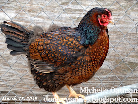 Lovin' the colors on this gal. It was a bit chilly.. so she was pretty puffed up and really showing all those feathers.